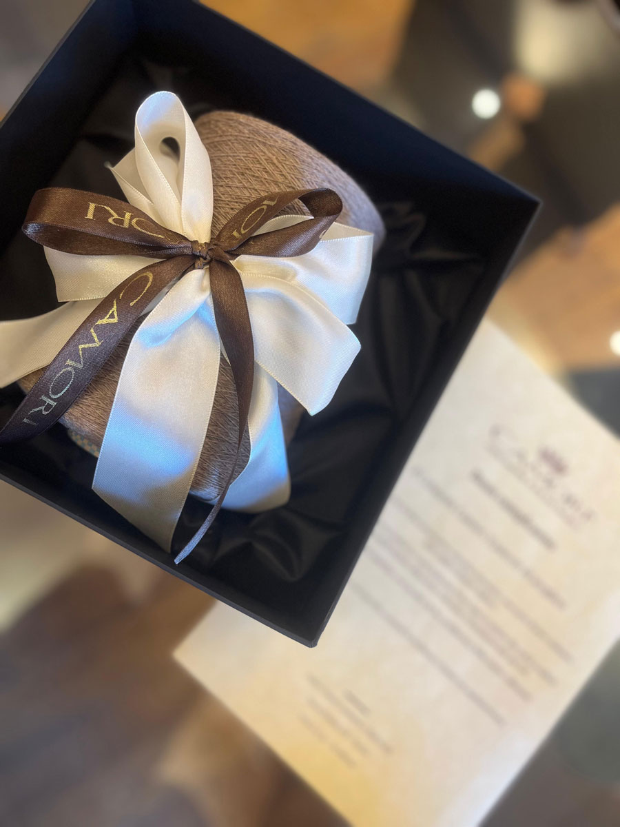 All’interno del cofanetto è inclusa una pergamena personalizzata, pensata per accompagnare il dono con un messaggio elegante e significativo. La pergamena può essere preparata con un testo dedicato alle festività oppure con una formulazione neutra, adatta a ogni occasione.