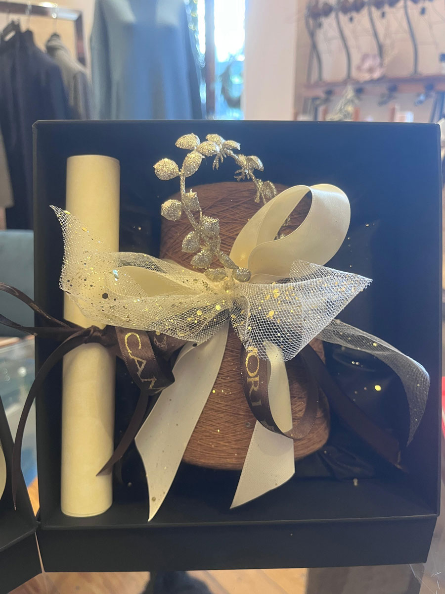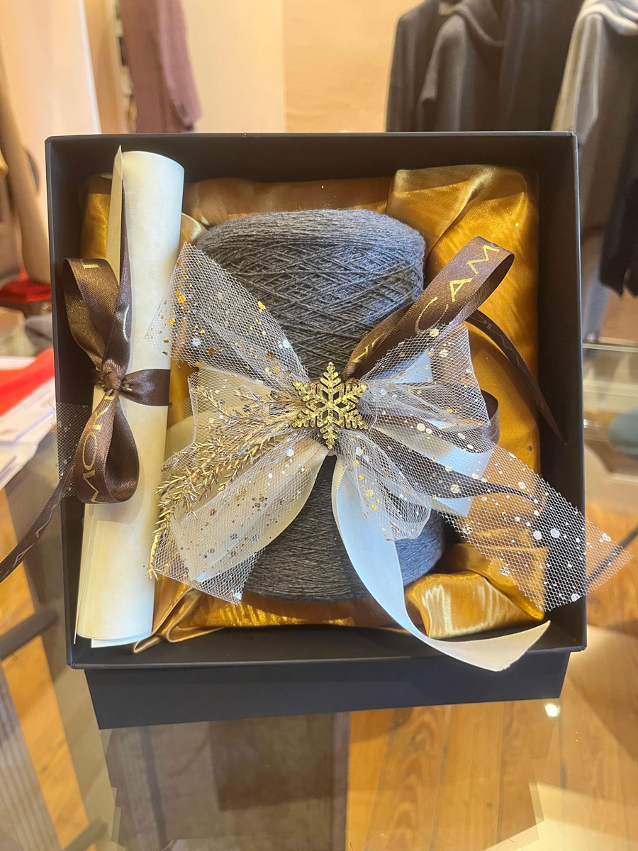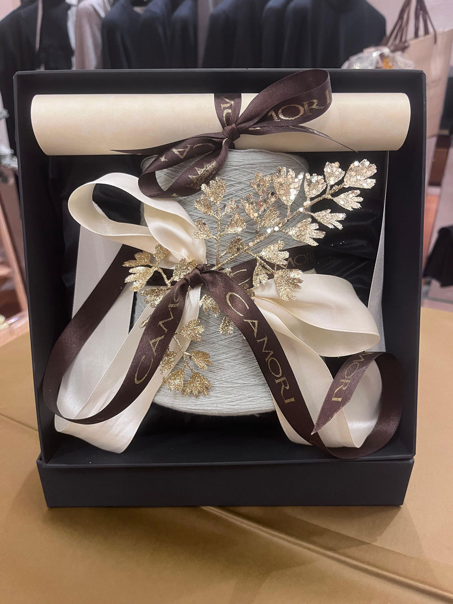 Un dono esclusivo che racchiude l’essenza del vero lusso: la libertà di scegliere. All’interno del cofanetto, una preziosa rocca di puro cashmere proveniente dalle migliori filature italiane. Un filo nobile che diventerà , nelle mani dei nostri maestri artigiani, un capo unico e personale.